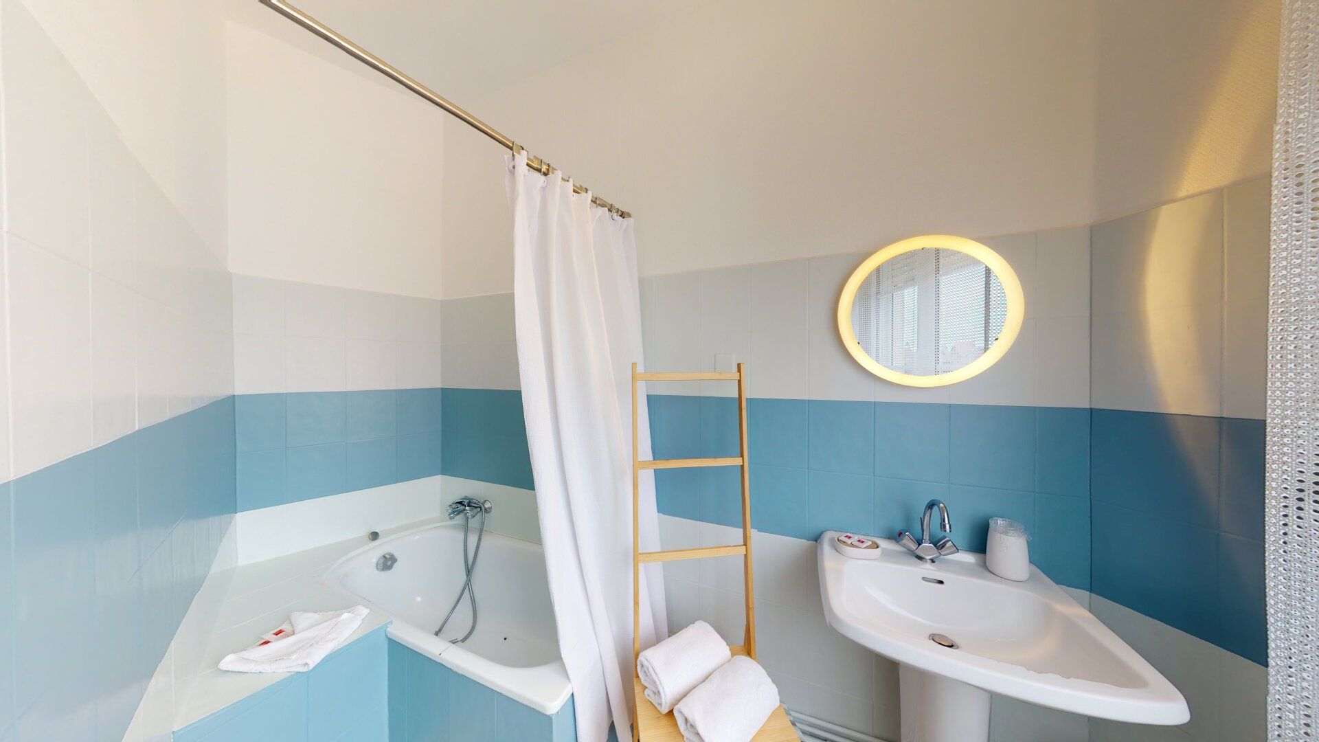 Quarto de 19 m2 com vista para a entrada de Trouville com 1 cama de casal de 160 cm, banheira, máquina Tassimo e bandeja de cortesia, chaleira a pedido, televisão, Wi-Fi, secador de cabelo, produtos de boas-vindas e serviço de bagagem .